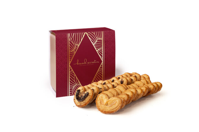 The classic Palmier is a favourite delights to most people. The crunchiness of the pastry and sugar, and the flaky and buttery layers, all melts in your mouth together. An elegant palmier is also a best choice of Chinese New Year’s gift.